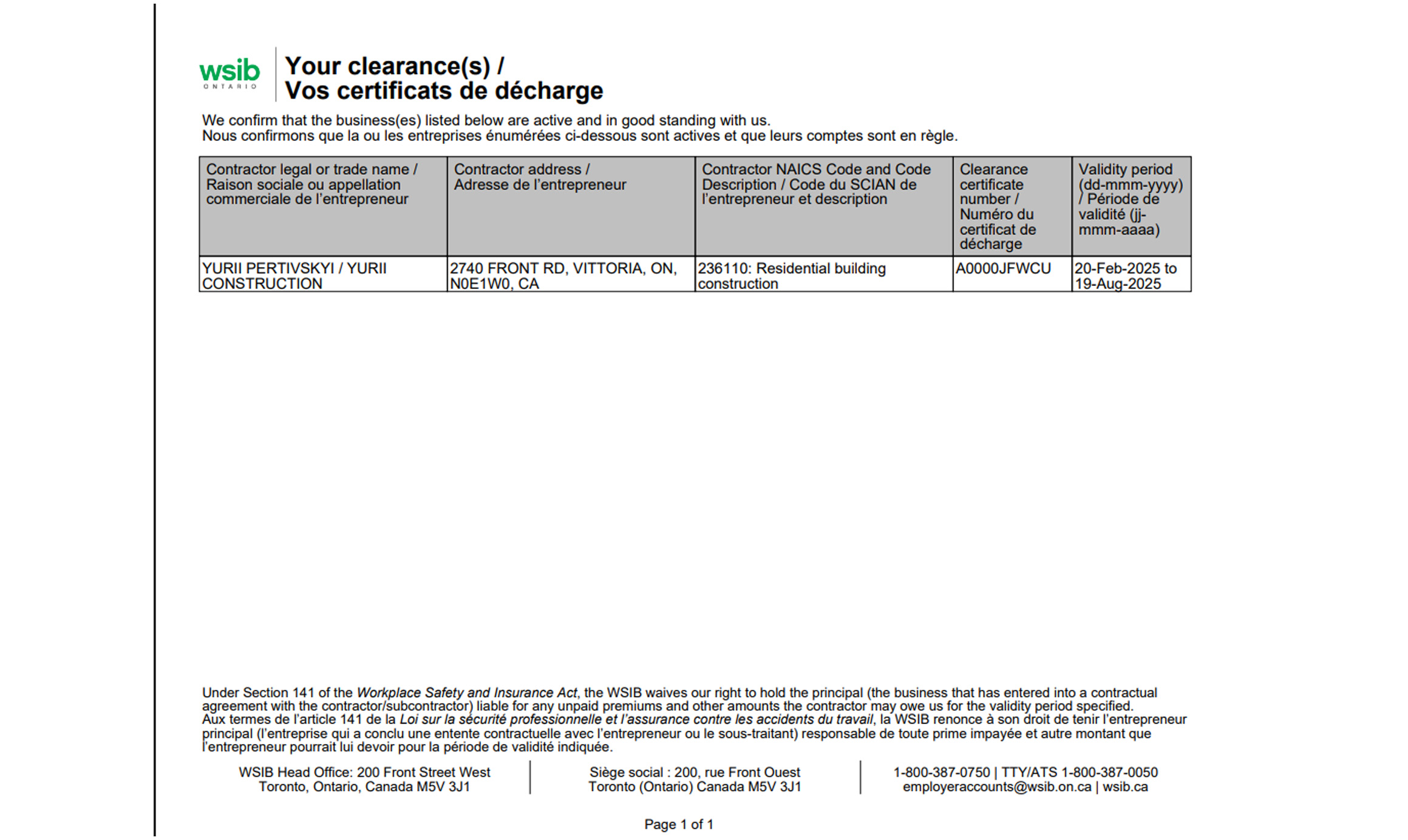123 Main Street Toronto, ON M5V 2H1 Canada +12262060914 test@example.com